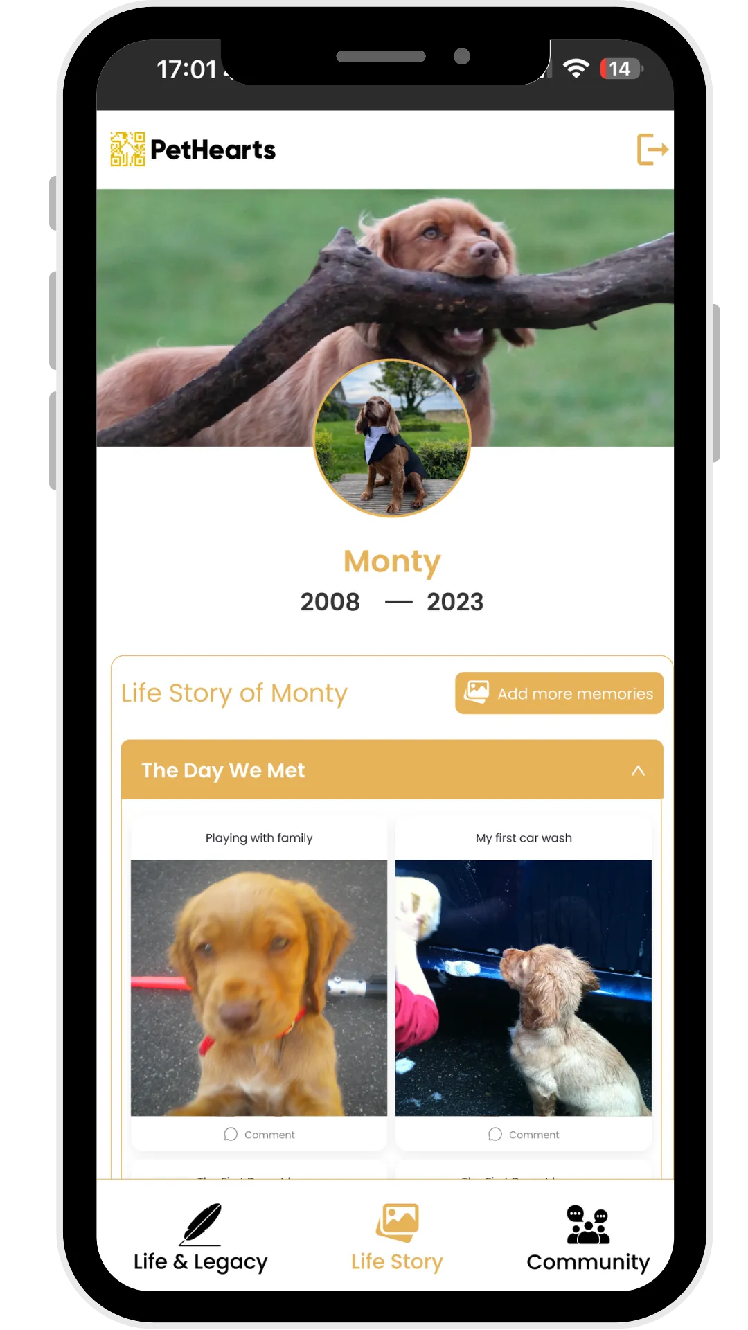 1. After getting your memory tags, you’ll be prompted to make an account, and create your tribute page on Pethearts — it takes just 5 minutes.