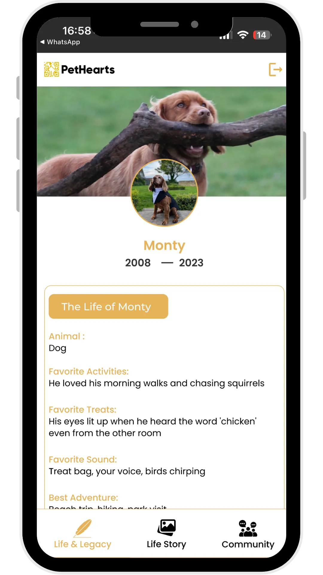 2. You are helped to add important things about your pets life to their online memorial: for example a short written tribute, pictures, videos, things they liked and any special memories.